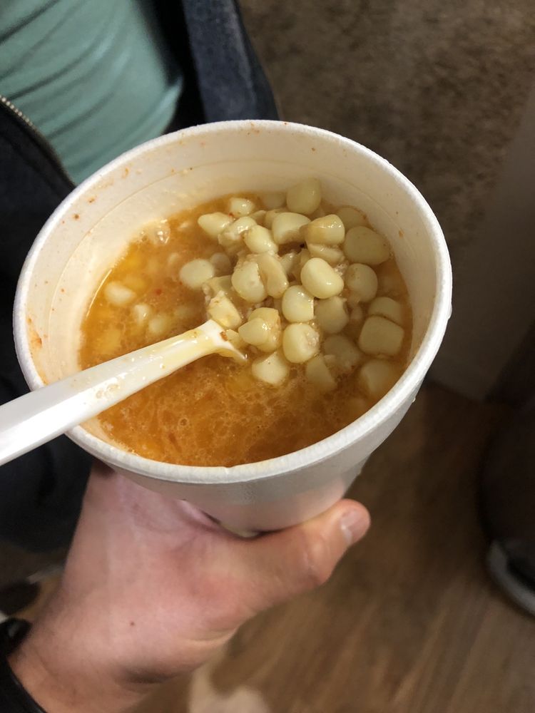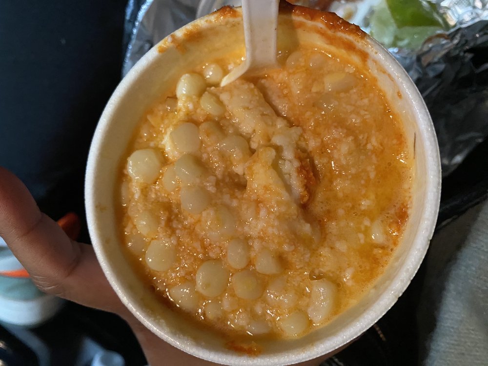 Corn with butter, sour cream, Elote cheese, and your choice of sauce.